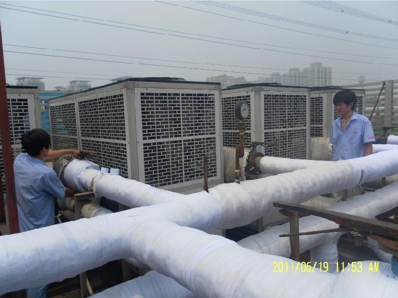 中央空調清洗技術規(guī)程 清洗工藝 機組真空正!芤褐屑尤腴_利清洗劑并循環(huán)加熱→排出溶液凈化→凈化后的溶液加入機內(nèi)→依上多次循環(huán)至溶液清亮→加入開利耐高溫保護膜→溶液循環(huán)5小時左右,靜放2小時→排出溶液再生。 開利獨特的清洗工藝可使堵塞的噴淋系統(tǒng)通暢。 注:清洗前機組泄漏不超標。 循環(huán)水系統(tǒng)清洗 清洗工藝: 取樣分析垢銹成份→核定水量→投藥→循環(huán)10小時左右→排污→人工輔助清洗→清水循環(huán)→預膜→排水→結束。污垢嚴重的中央空調系統(tǒng),經(jīng)開利化工清洗后效率可提高20%—30%。 注:1. 當系統(tǒng)有油污時,應先除去。 2. 冷卻塔、風機盤管等應外加循 環(huán)系統(tǒng)清洗。 中央空調清洗的方法 室內(nèi)空氣質量不佳而引起的城市“大樓病”正危害著大眾的健康。醫(yī)學專家因此提出了“病態(tài)建筑”和“病態(tài)建筑綜合癥”等新概念,而這些病的無兇主要藏于樓宇之“肺”--售中式空調管道(即我們?nèi)粘KQ的中央空調管道)和通風除法管道中,這些管道在長期使用中會各界許多灰塵、病菌、螨蟲、蟑螂、病毒及放射物。這些有害物質在送風過程中便污染了空氣,長期被人體吸入,就人導致上述疾病。人們90%的時間是呆在室內(nèi)的,室內(nèi)的空氣污染程度比室外嚴重2--50倍左右。如果不清潔空調風道,其至可以嚴重到100倍以上。 “非典”和禽流感的出現(xiàn)更引起了人們對空氣質量的高度重視。對管道進行定期清洗熱在必行,為了室內(nèi)的空氣清新,身體健康,必肱定期對空調風道進行清潔。 經(jīng)濟的中央空調冷凝器清洗方法 板式冷凝器是一種體積小效率高的冷凝器 板式冷凝器按所它所采用的制造材料有多種,常用的有鈦板,不銹鋼板等.焊接方式有純銅釬焊,鎳焊,不銹鋼焊等.其清洗方法也因材料不同而不同. 不銹鋼板請勿使用鹽酸或含氯化物超標的水清洗. 不要用磷酸或硫酸清洗以鈦為材料的板式. 清洗板式冷凝器需要了解冷凝器所采用的材料和水質成分切勿盲目清洗以免造成腐蝕. 水垢成分含 硫酸鈣 硅酸鹽一類的用含檸檬酸 硝酸 磷酸等清洗劑 含碳酸鈣的水垢用10%硝酸+90%的水清洗