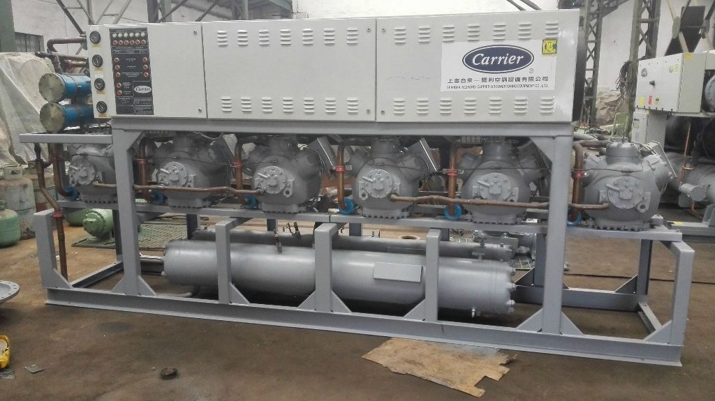 A、螺桿式冷水機組 優(yōu)點:1.結(jié)構(gòu)簡單,運動部件少,易損件少,僅是活塞式的1/10,故障率低,壽命長2.圓周運動平穩(wěn),低負荷運轉(zhuǎn)時無“喘振”現(xiàn)象,噪音低,振動小3.壓縮比可高達20,EER值高4.調(diào)節(jié)方便,可在10%~100%范圍內(nèi)無級調(diào)節(jié),部分負荷時效率高,節(jié)電顯著5.體積小,重量輕,可做成立式全封閉大容量機組6.對濕沖程不敏感7.屬正壓運行,不存在外氣侵入腐蝕問題 缺點: 1.價格比活塞式高 2.單機容量比離心式小,轉(zhuǎn)速比離心式低3.潤滑油系統(tǒng)較復雜,耗油量大4.大容量機組噪聲比離心式高5.要求加工精度和裝配精度高